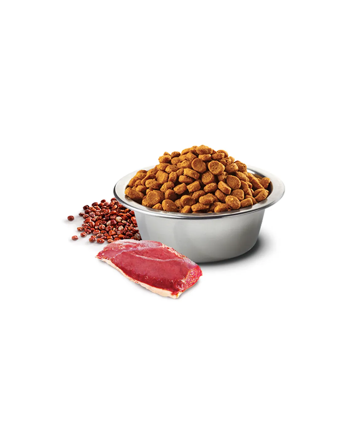 Інгредієнти: м'ясо качки без кісток (20%), дегідратований білок качки (20%), солодка картопля, пульпа цукрового буряку, яєчний порошок, кіноа (8%), курячий жир, дегідратований білок оселедця, горохова клітковина, насіння льону, риб'ячий жир (оселедець ), сушена броколі (2.5%), сушена спаржа (2.5%), фруктоолігосахариди, дріжджовий екстракт (джерело манноолігосахаридів), мікрокристалічна целюлоза, сухі пивні дріжджі, лушпиння насіння і насіння подорожника, сульфат кальцію дигідрат, хлорид калію, хлорид натрію, глюкозамін, хондроїтин сульфат.