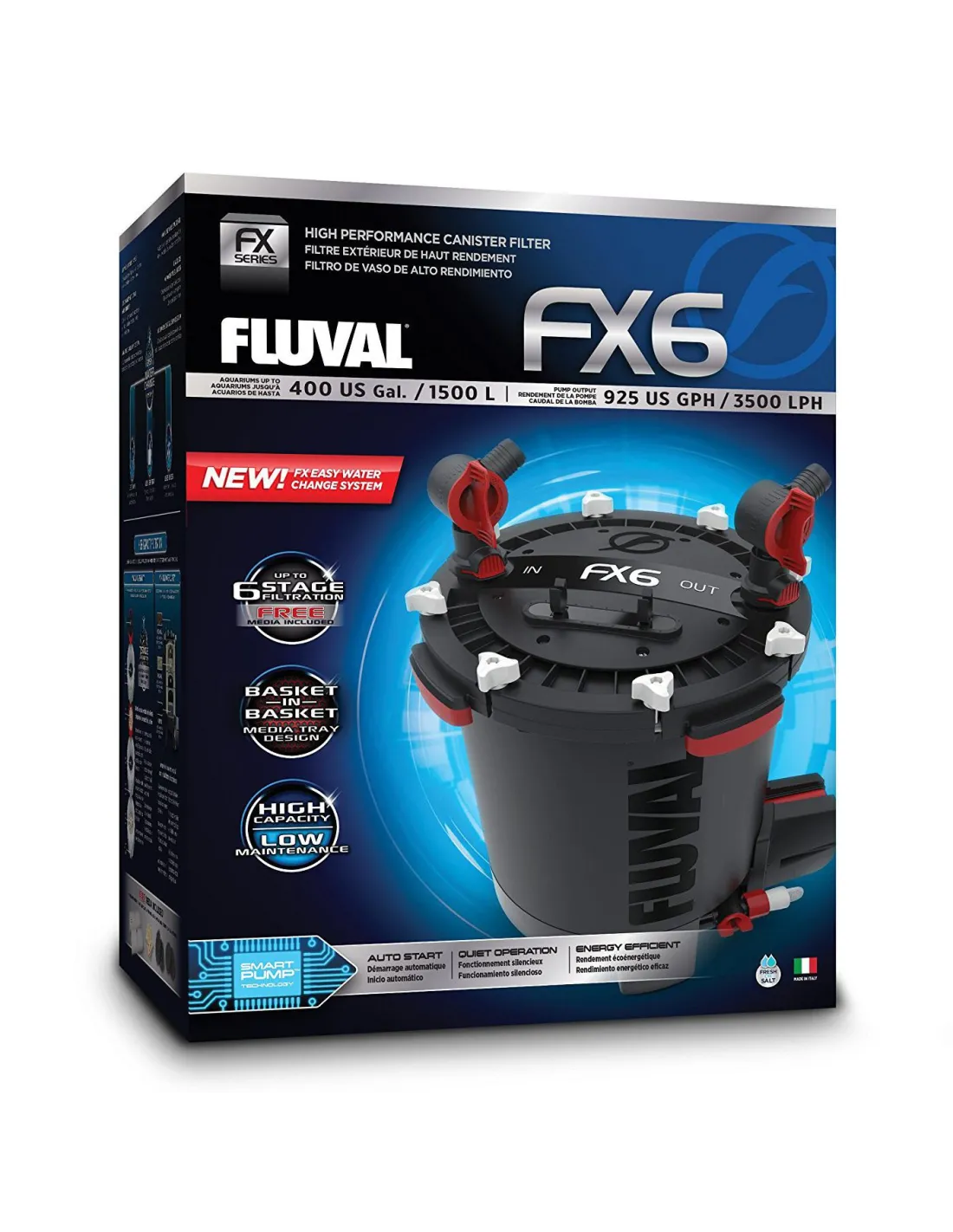 Для акваріумів з видами риб, які багато їдять і за своєю природою досить «безладні» (наприклад, поведінка при копанні), ми рекомендуємо використовувати тонку вставку фільтра Fluval на дні фільтра та хімічне середовище (наприклад, активоване вугілля) з Fluval Bio Max. в середині та в останню чергу, щоб використовувати кільця попереднього фільтра Fluval зверху.