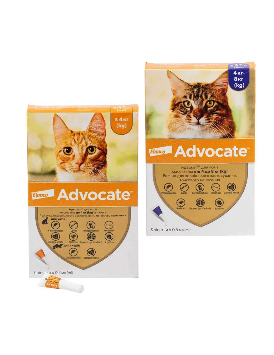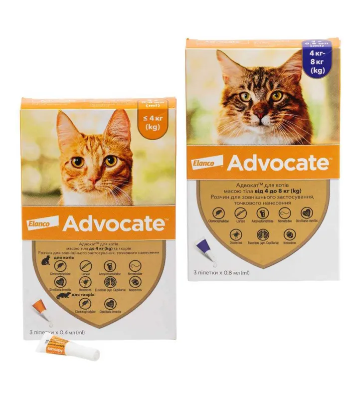 Краплі Адвокат® від Elanco представлені у двох дозуваннях: