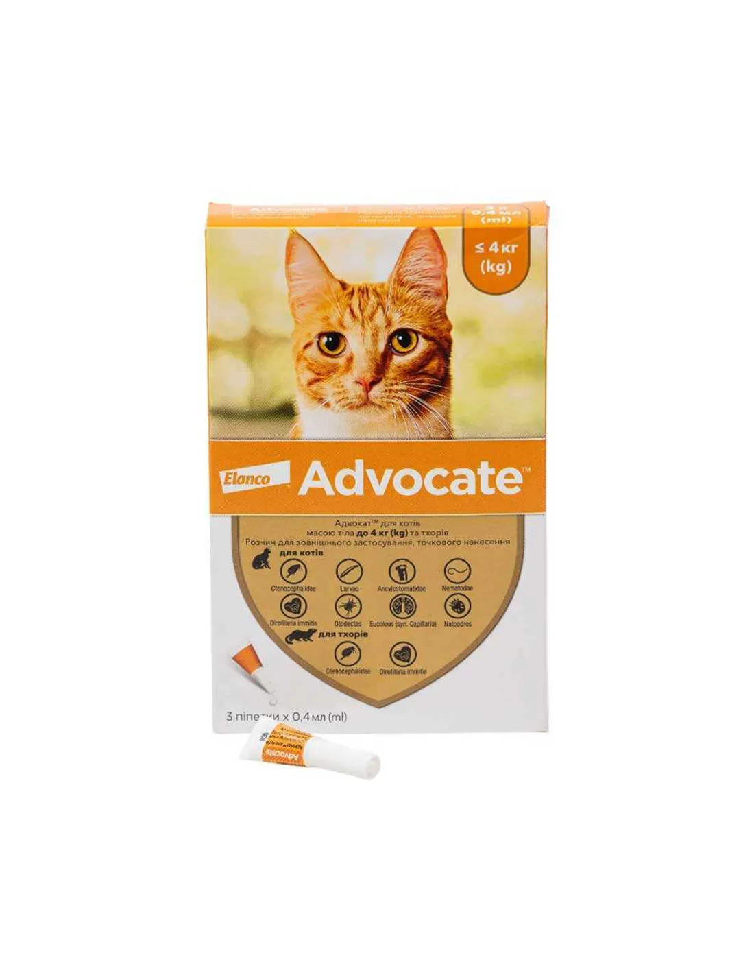 Забезпечте своєму коту комплексний захист від паразитів із краплями Адвокат® від Elanco! Цей універсальний протипаразитарний препарат ефективно бореться з блохами, кліщами, вушними кліщами та широким спектром гельмінтів, включаючи серцевих черв’яків (дирофілярій). Завдяки унікальній формулі на основі імідаклоприду та моксідектину, краплі забезпечують швидке знищення паразитів та довготривалий захист до 4 тижнів.