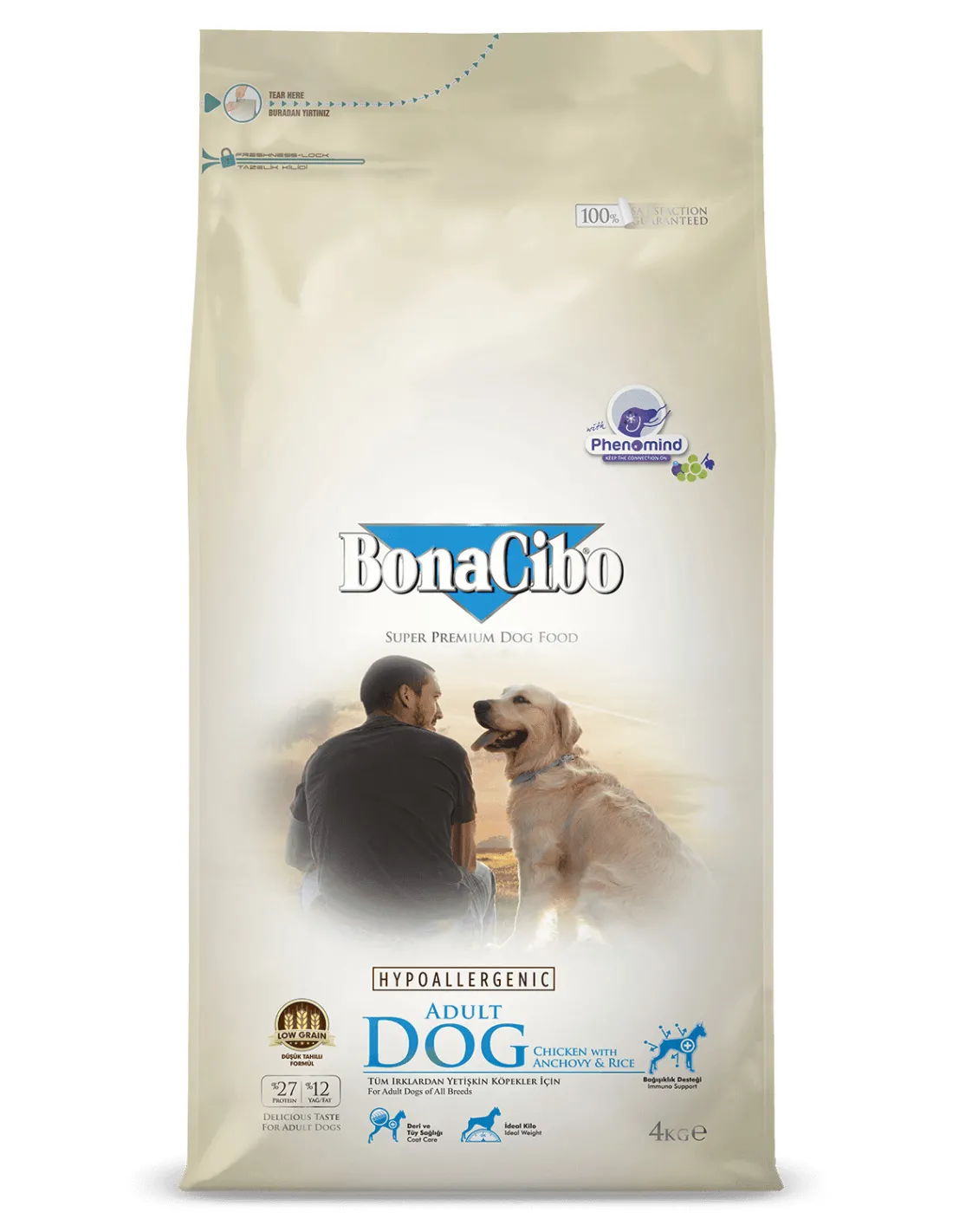 Відгуки про Корм BONACIBO ADULT DOG для дорослих собак з м'ясом курки, анчоусами та рисом / Питання та відповіді