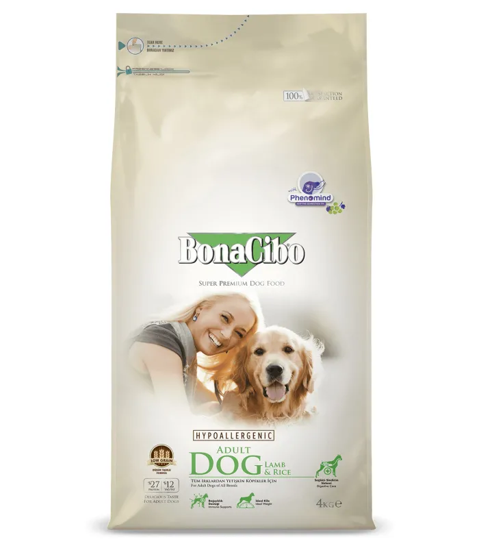 Для собак BonaCibo пропонує сухі корми, які відповідають потребам цуценят, дорослих собак і тих, хто має особливі дієтичні вимоги, забезпечуючи енергію та здоров’я.