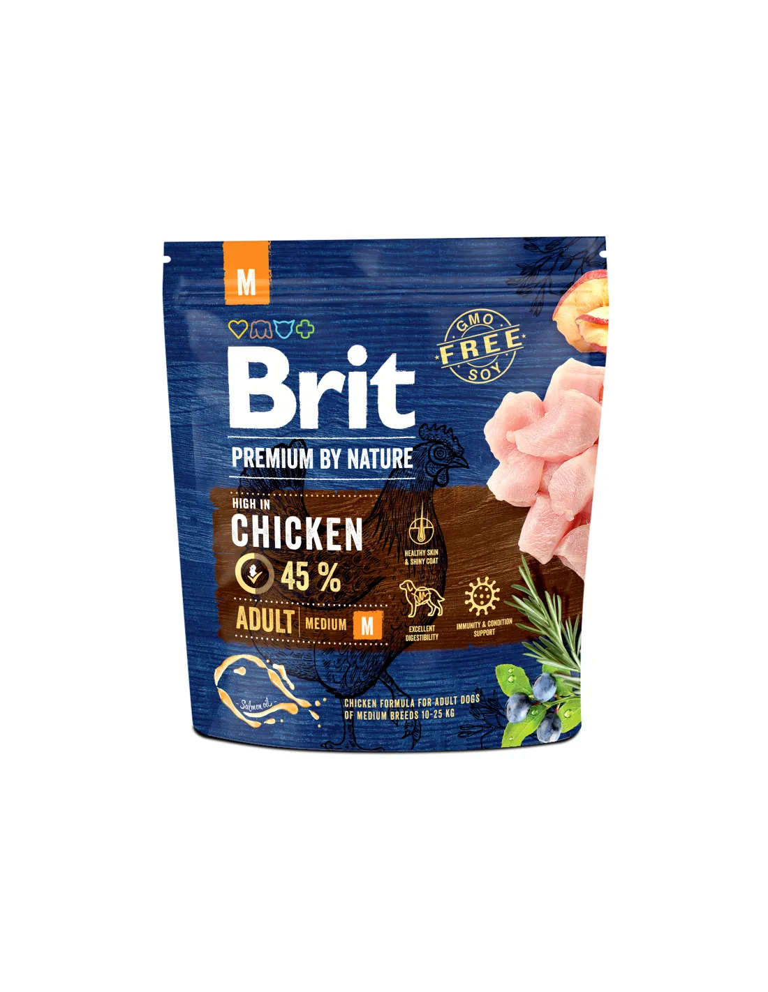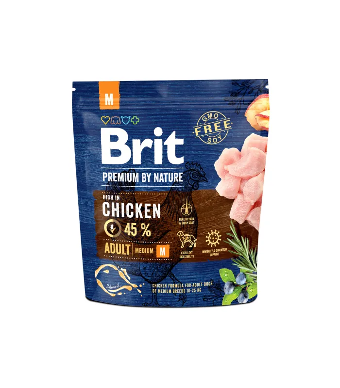 Корм преміумкласу Brit Premium Adult M вигідно відрізняється збалансованістю та гарними смаковими якостями. Він підійде для собак середніх порід в якості щоденного раціону. Корм забезпечить: