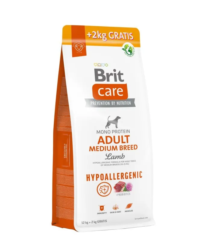Відгуки про Корм для собак середніх порід Brit Care Dog Hypoallergenic Adult Medium Breed гіпоалергенний з ягням, 12+2 кг / Питання та відповіді