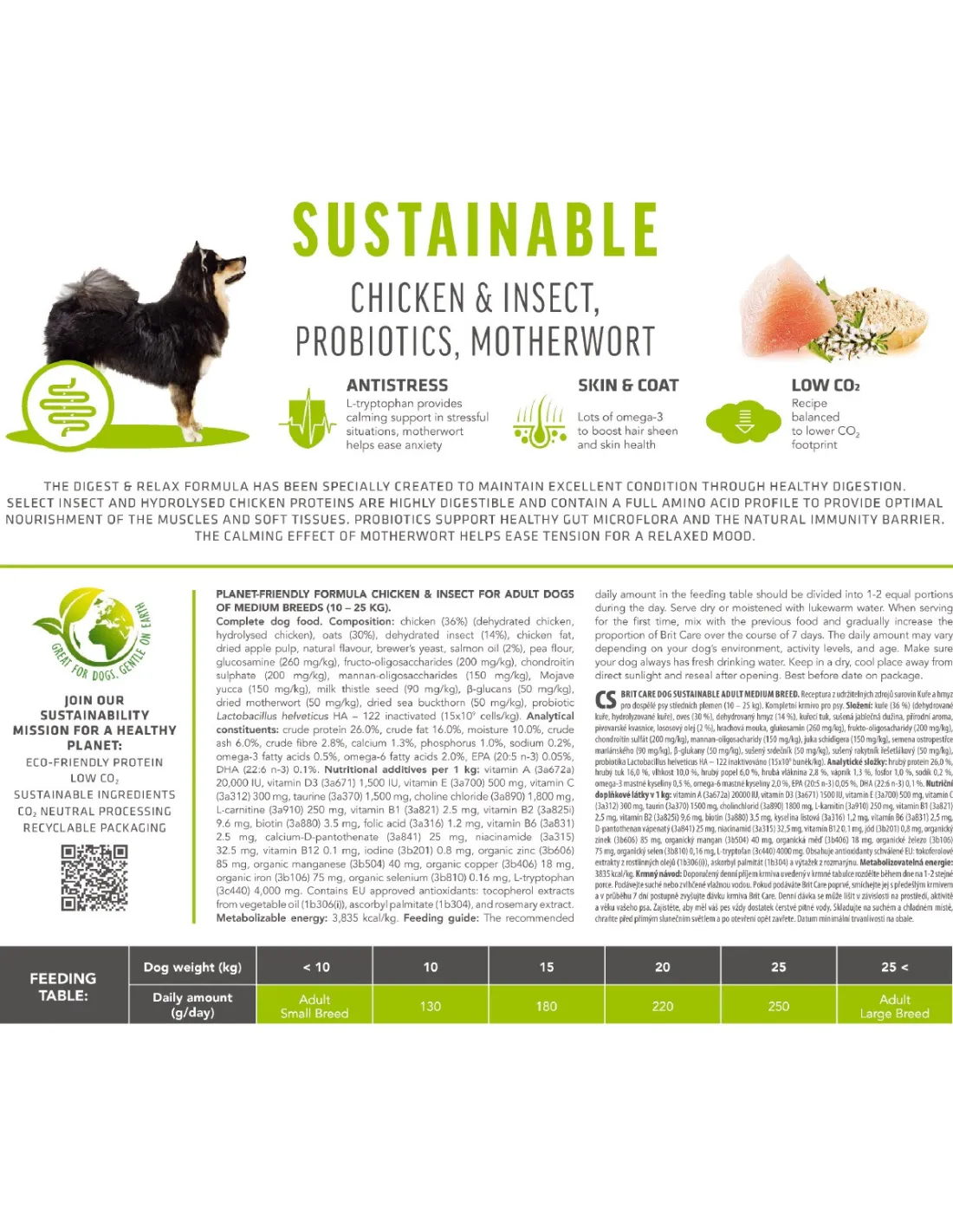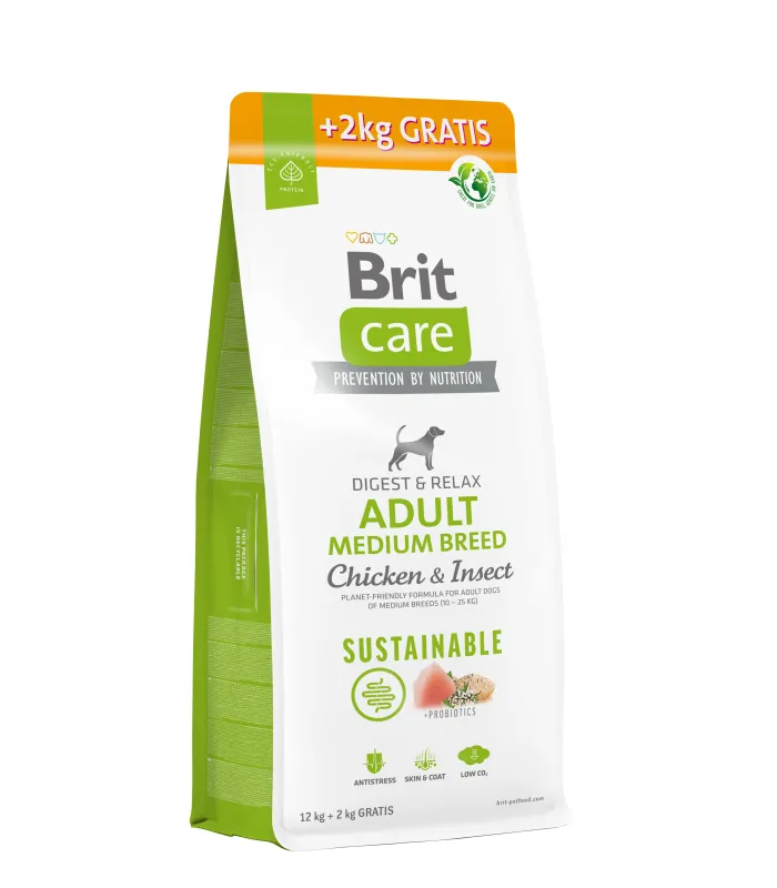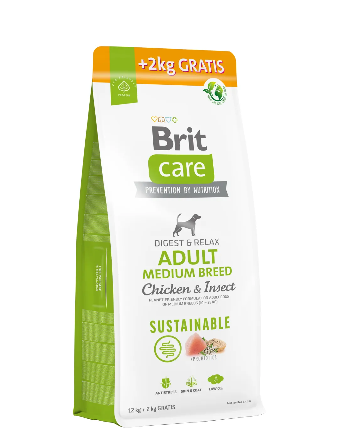 Відгуки про Корм для собак середніх порід Brit Care Dog Sustainable Adult Medium Breed з куркою та комахами, 12+2 кг / Питання та відповіді