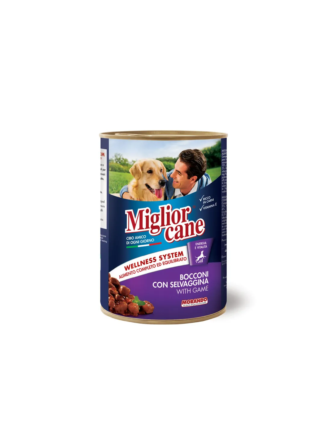 Вологий корм «Migliorcane зі шматочками дичини для собак» виробляється в Італії за рецептурою, розробленою вченими. Формула цього корму включає всі необхідні вашому песику поживні речовини: