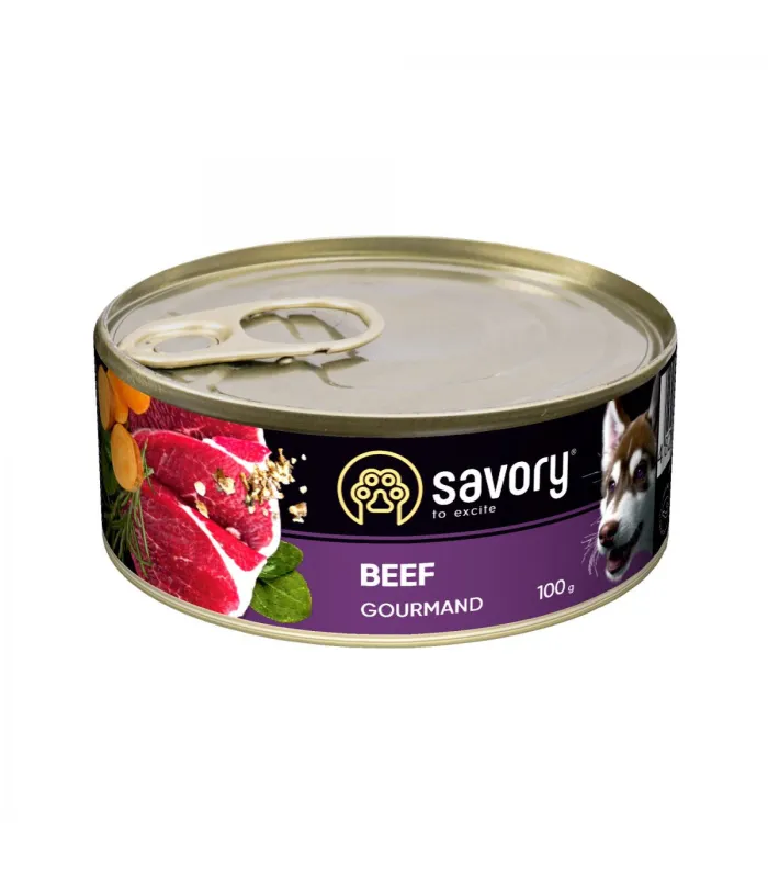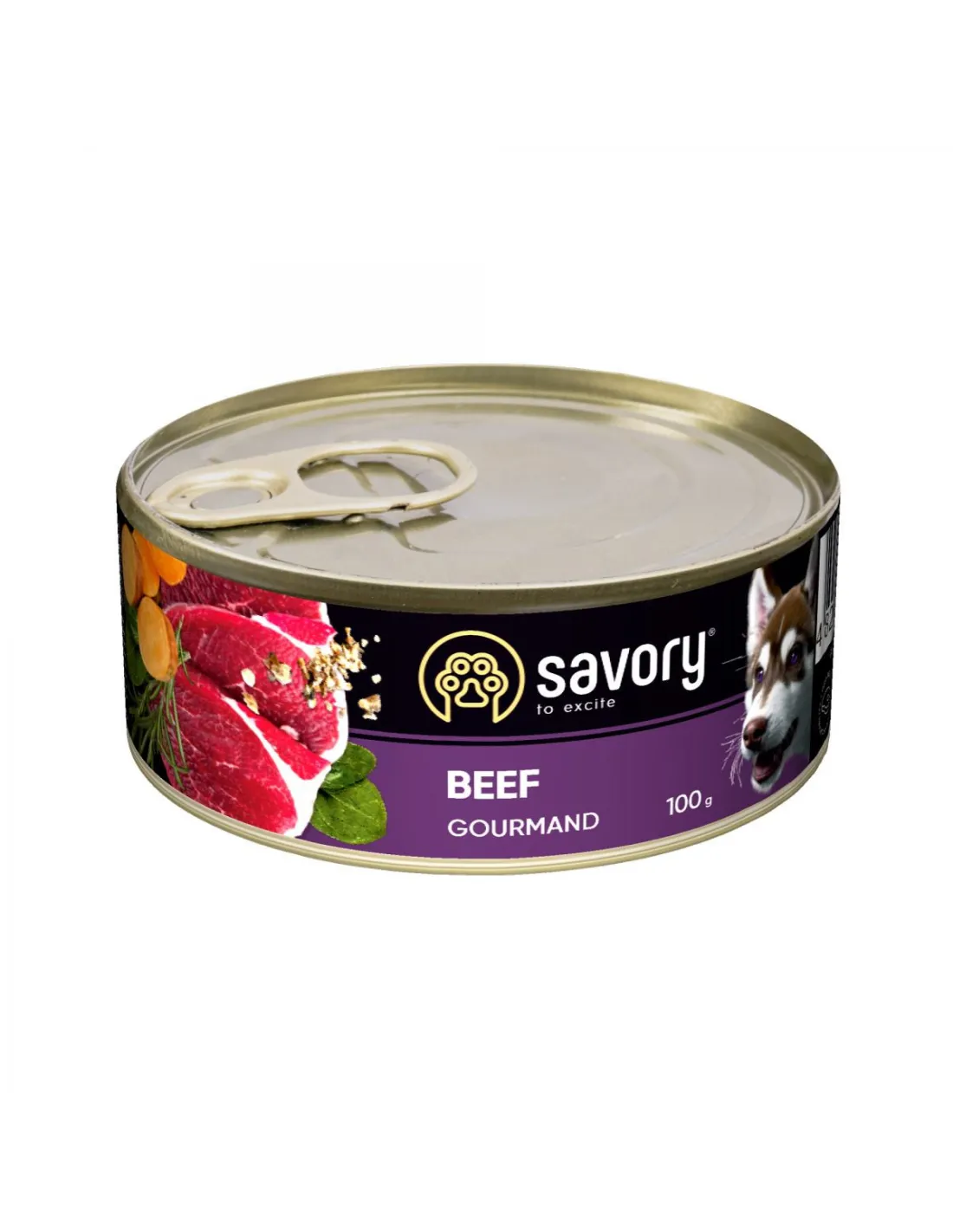 Повнораціонний вологий корм для дорослих собак Savory з яловичиною.