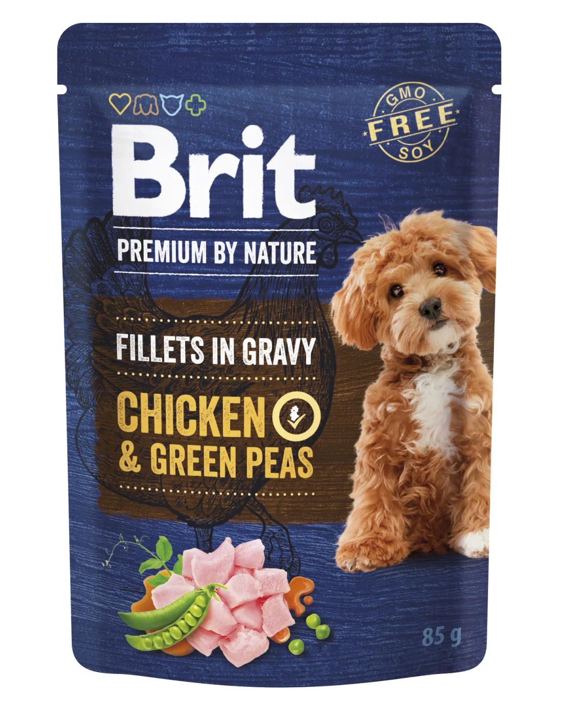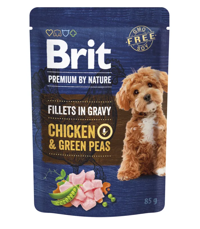 Відгуки про Корм вологий для собак малих порід Brit Premium Fillets in Gravy Chicken & Green Peas філе в соусі курка і горошок 85 г / Питання та відповіді