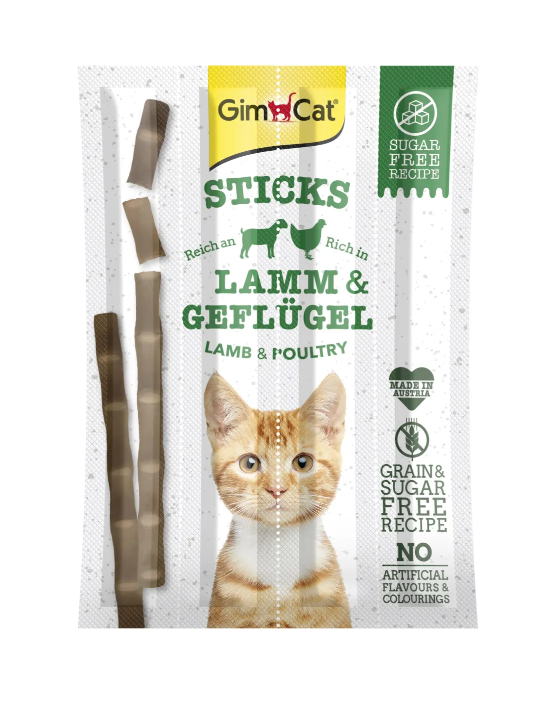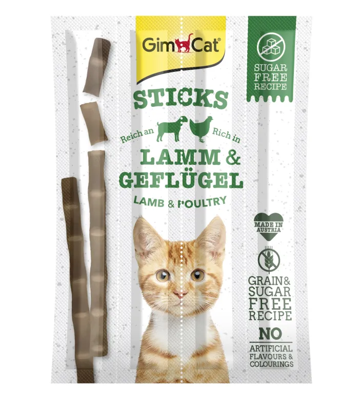 Смачнючі палички GimCat Sticks з ягням і м'ясом птахів – надзвичайна насолода навіть для вередливих котів.