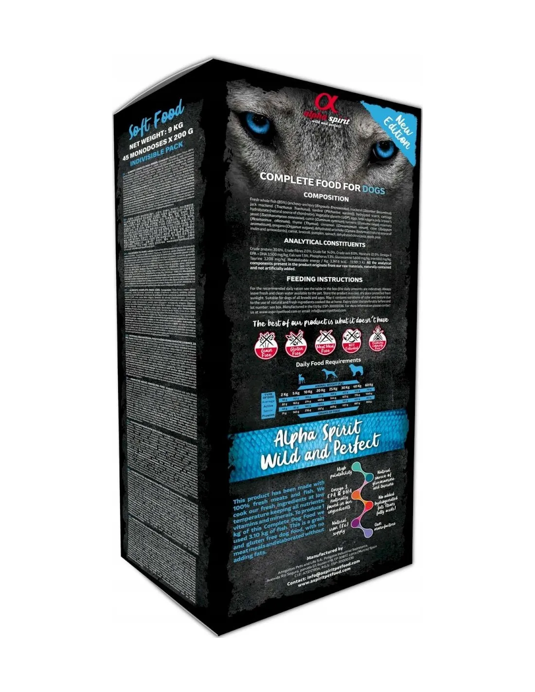 ALPHA SPIRIT Semi-moist WILD FISH BOX — це натуральне харчування, яке дарує вашому собаці здоров’я, енергію та радість. Замовляйте вже сьогодні та подбайте про благополуччя вашого улюбленця!