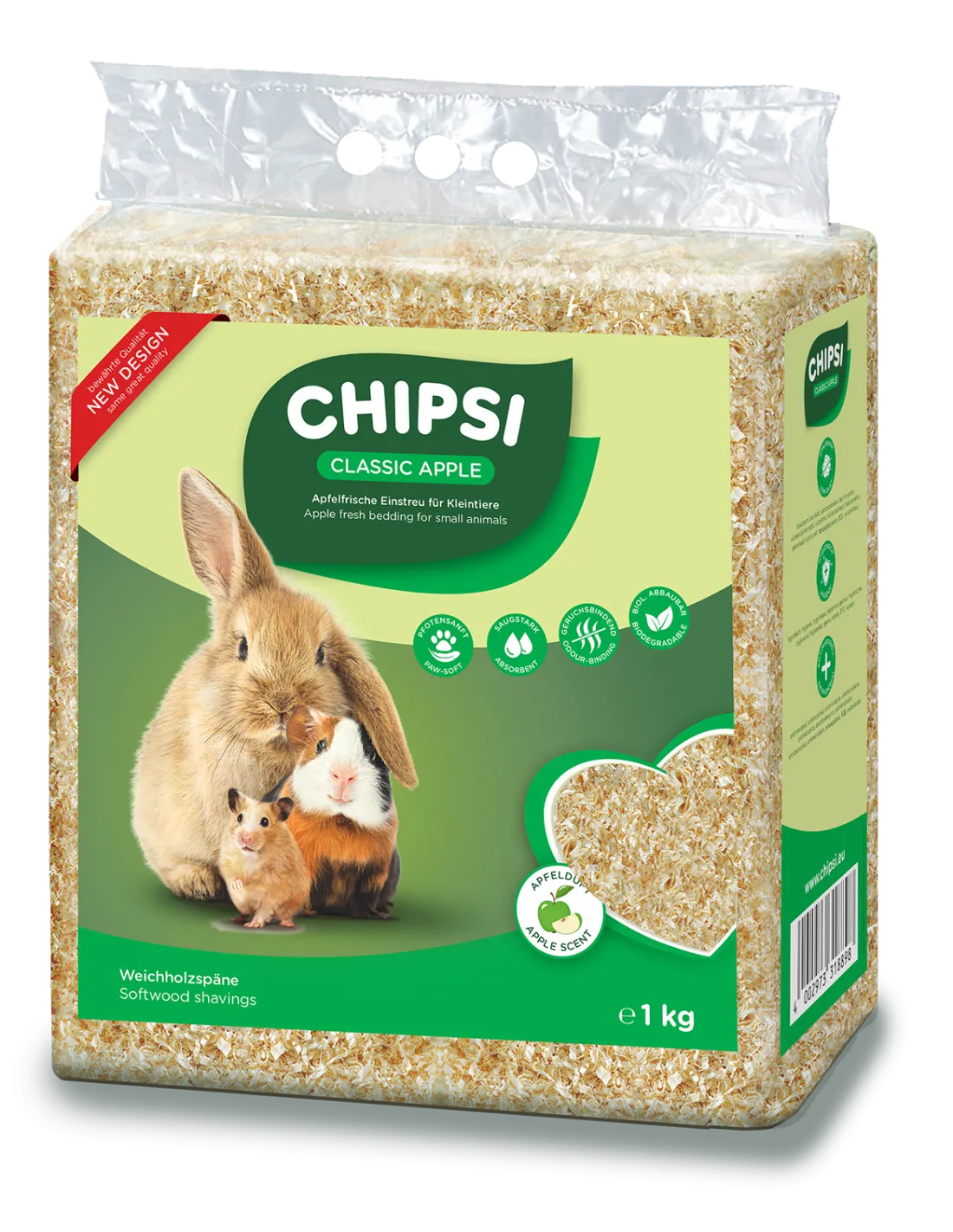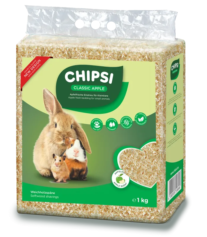 CHIPSI Classic — це класичний деревний наповнювач, виготовлений з м'якої деревини, такої як ялина та ялиця. Він відзначається високою поглинальною здатністю та ефективним контролем запахів. Цей наповнювач ідеально підходить для гризунів, таких як хом'яки, морські свинки та кролики.