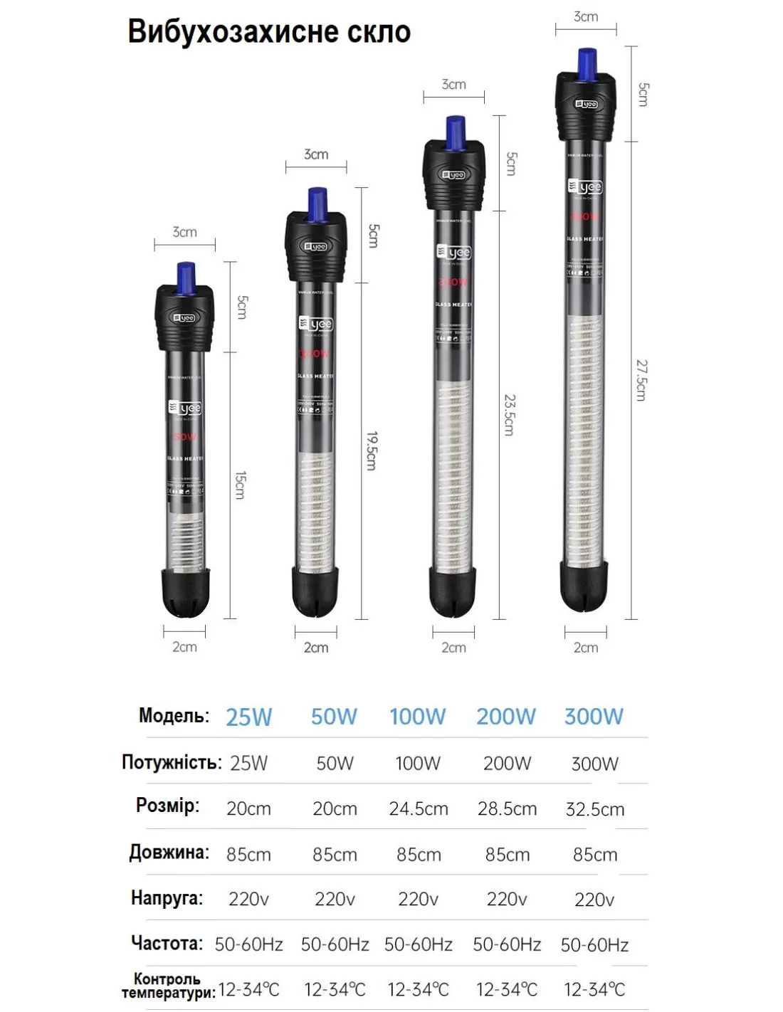 Обігрівачі YEE забезпечують стабільну температуру, необхідну для здоров’я акваріумних мешканців. Вони виготовлені з міцних матеріалів і підходять для різних типів акваріумів.