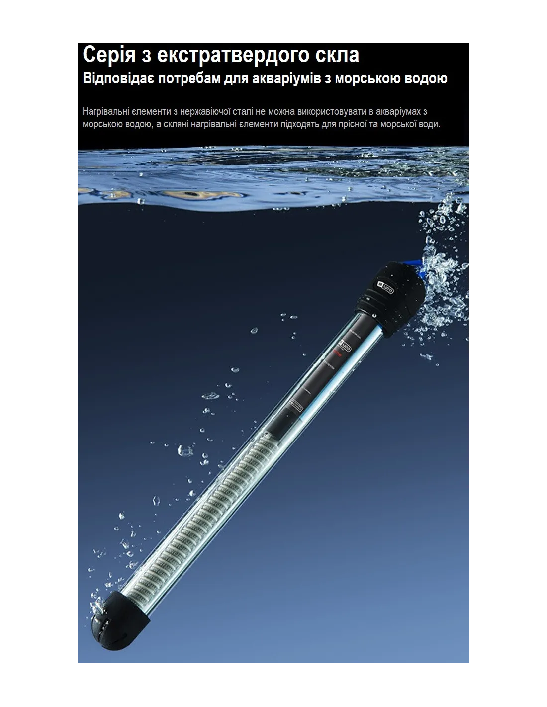 Обігрівачі з нержавіючої сталі 304, які вирізняються ефективним теплопередаванням і довговічністю. Підходять для прісноводних і морських акваріумів.