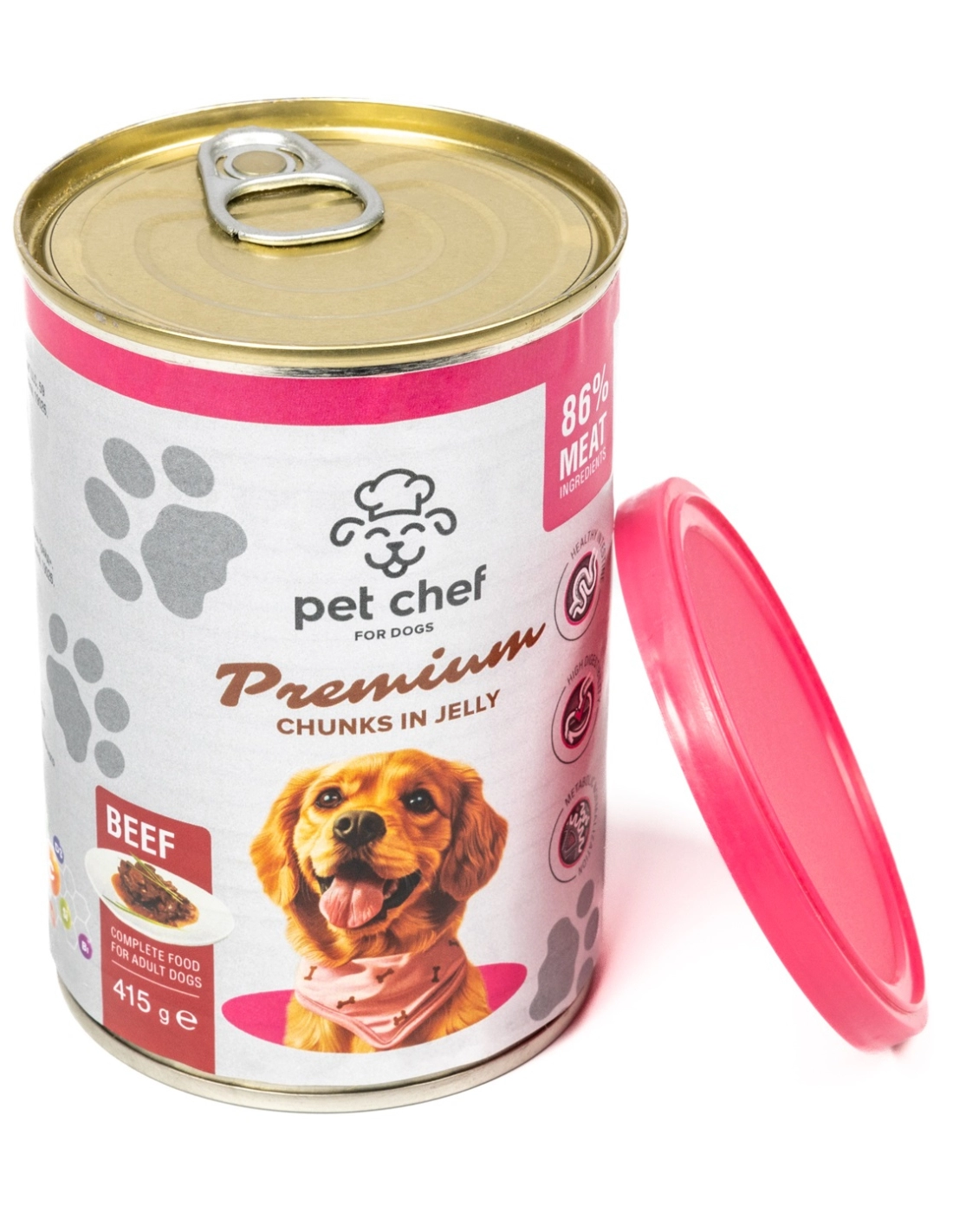 У складі паштетів Pet Chef мінімум 78 % м’ясних інгредієнтів (курка, яловичина, індичка, м’ясне асорті), що забезпечує тваринам необхідний білок для здоров’я та енергії.