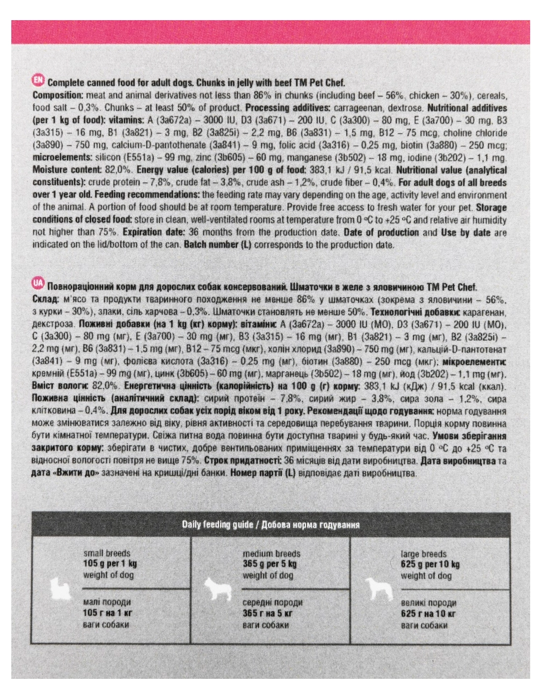 Pet Chef виробляється на українських потужностях із дотриманням сучасних стандартів якості та харчової безпеки.