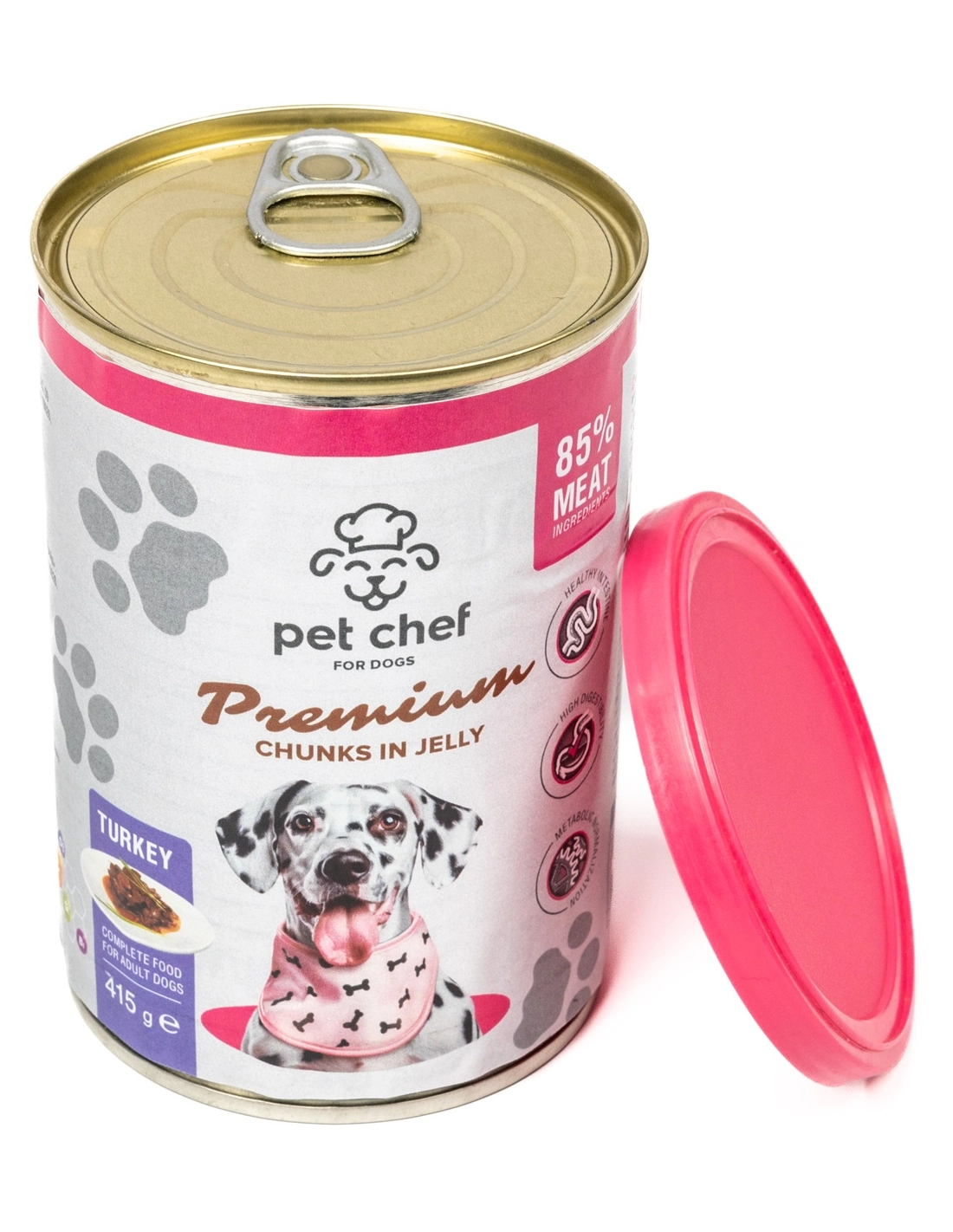 У складі паштетів Pet Chef мінімум 78 % м’ясних інгредієнтів (курка, яловичина, індичка, м’ясне асорті), що забезпечує тваринам необхідний білок для здоров’я та енергії.