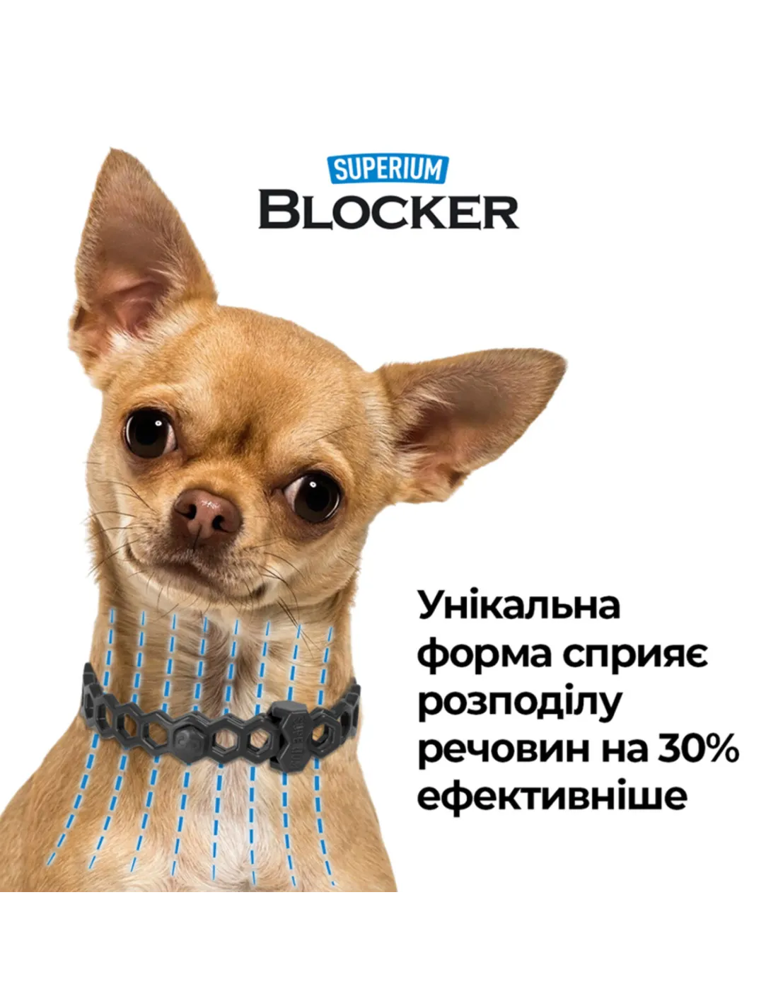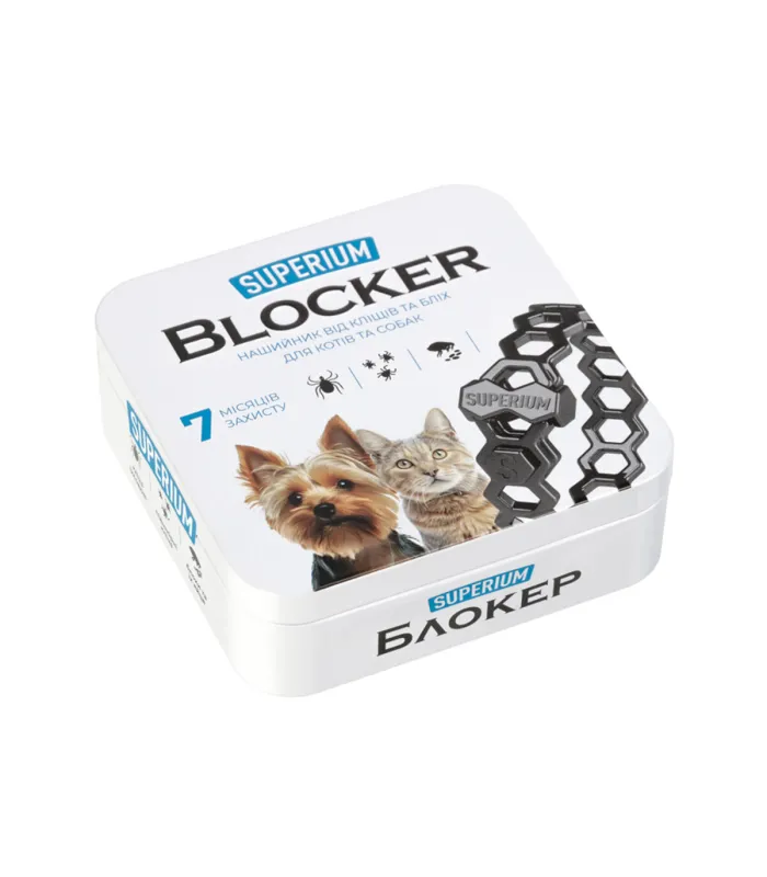 СУПЕРІУМ Блокер — ефективний протипаразитарний нашийник для котів і собак, який забезпечує тривалий захист від іксодових кліщів, бліх, їх личинок, вошей та інших паразитів.