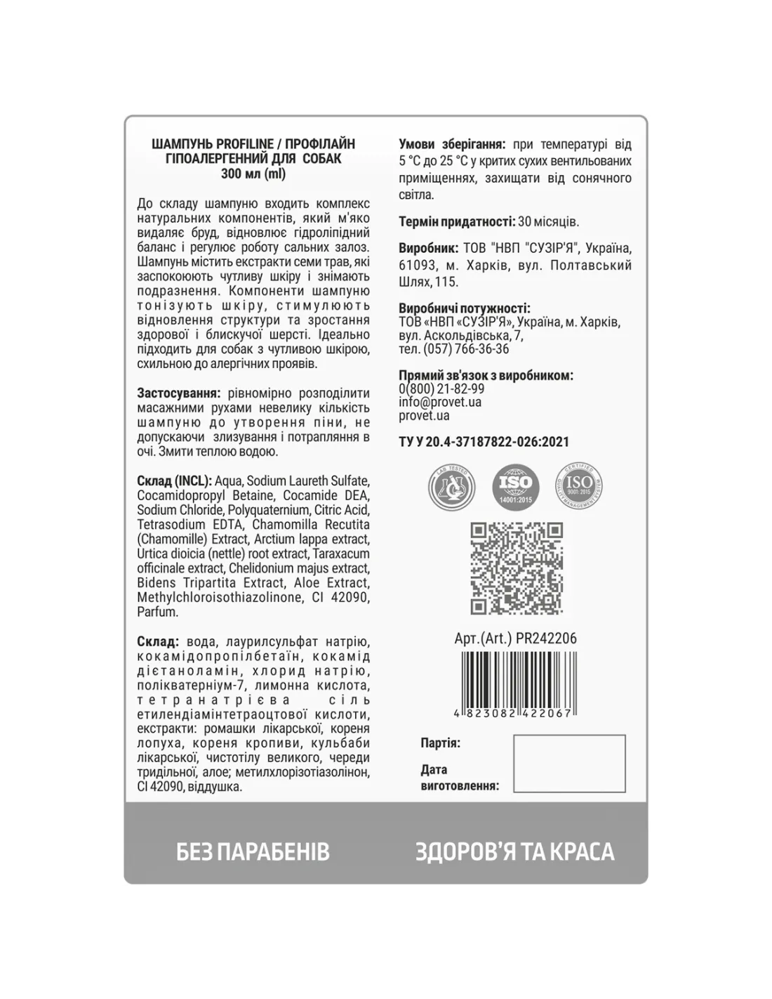 Лінія Profiline включає шампуні для догляду за шерстю та шкірою тварин. Вони виготовлені з натуральних інгредієнтів і не містять шкідливих речовин, таких як парабени.