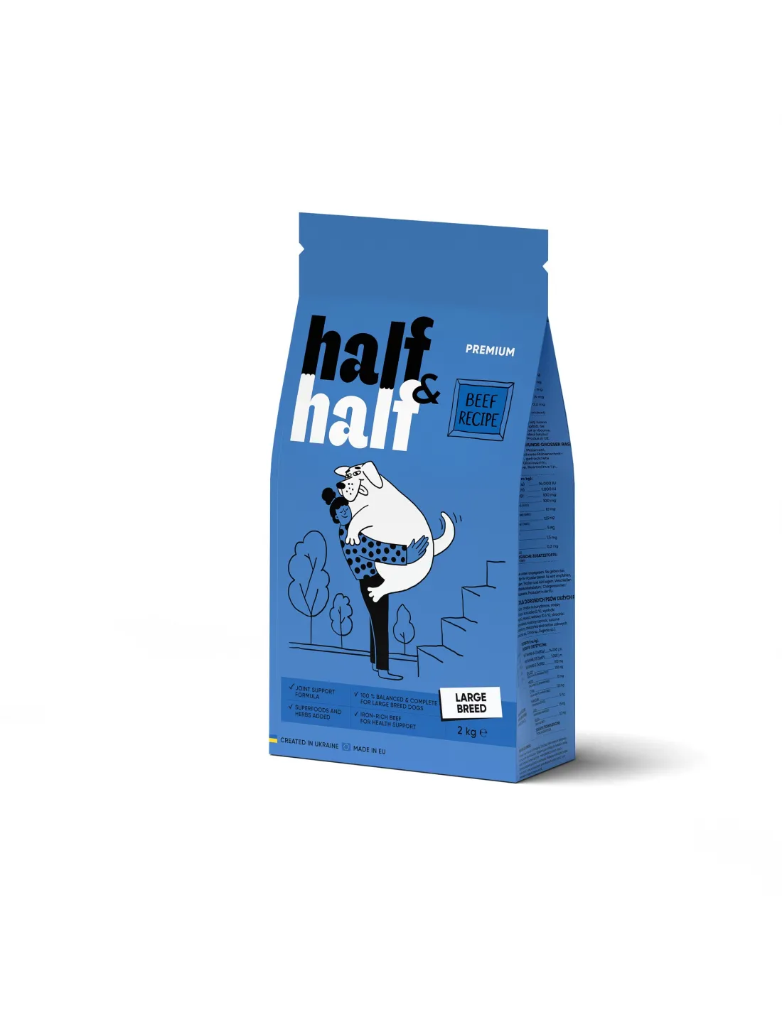 Збагачена фруктами, овочами, хондропротекторами й лікарськими рослинами рецептура Half&Half піклується про оптимальну користь та смак у кожній порції.