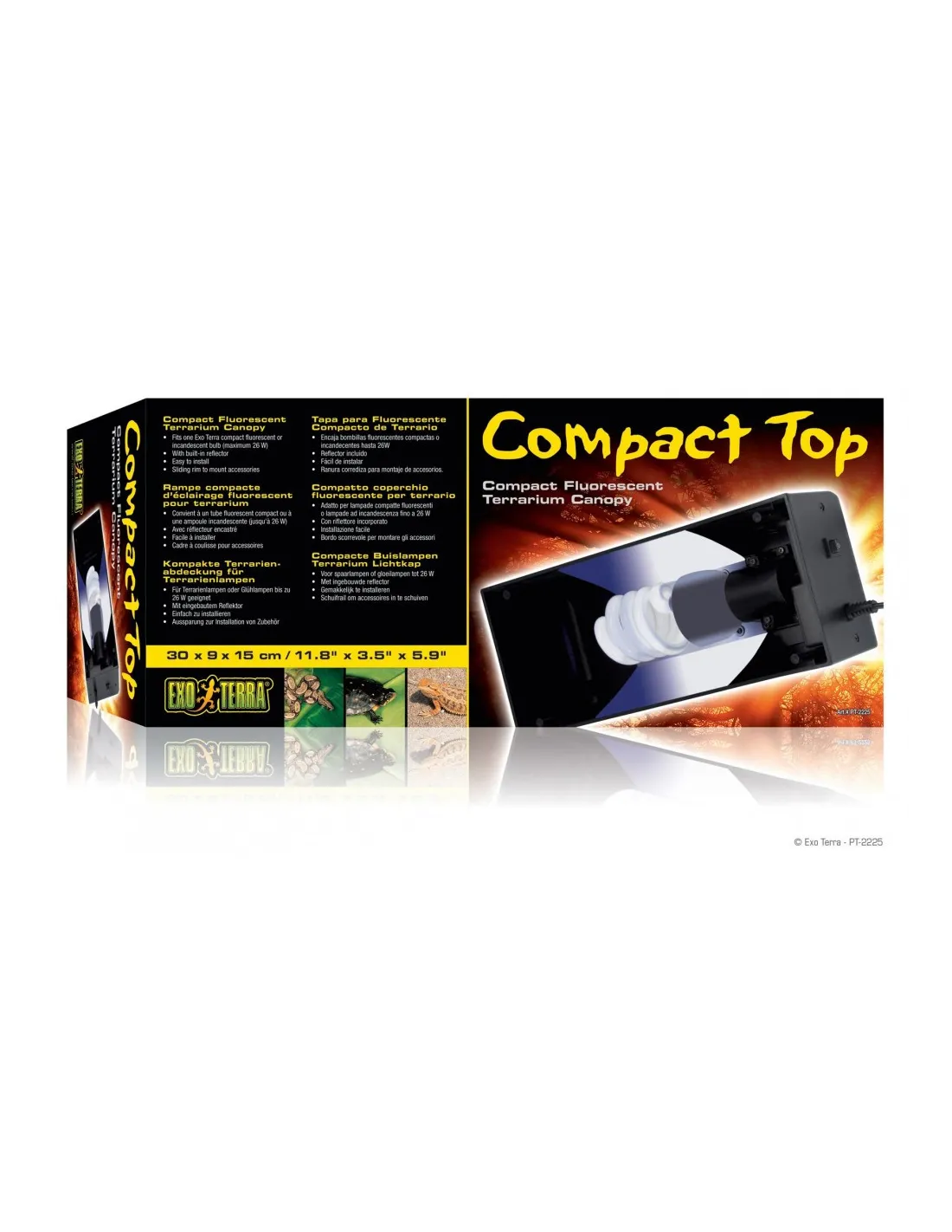 Компактний верхній навіс Exo Terra - це компактний люмінесцентний тераріумний навіс, призначений для використання зі скляним терасою Exo Terra. Цей простий у монтажі навіс вміщує компактні люмінесцентні лампи або лампи розжарювання малої потужності.
