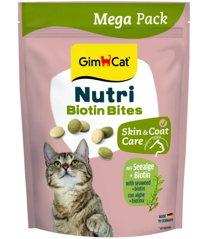 Подаруйте своєму коту не лише смачні ласощі, але й турботу про його здоров'я. GimCat Nutri Biotin Bites – це ідеальний вибір для тих, хто дбає про блискучу шерсть та здорову шкіру свого улюбленця. 🐾