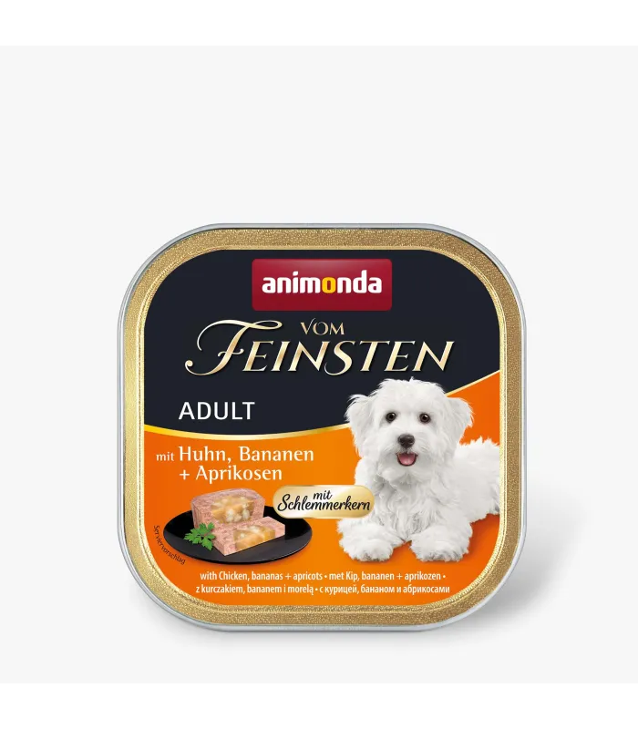 Відгуки про Вологий корм Animonda Vom Feinsten Adult with Chicken, Bananas + Apricots з куркою, бананами і абрикосами для собак, 150 г / Питання та відповіді