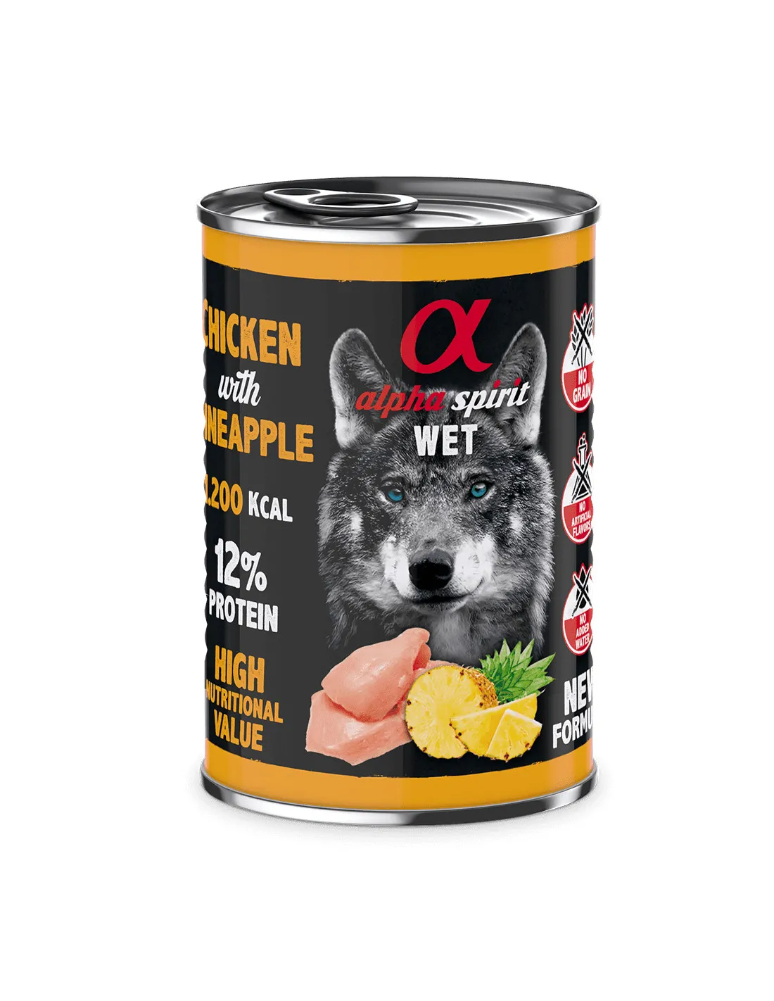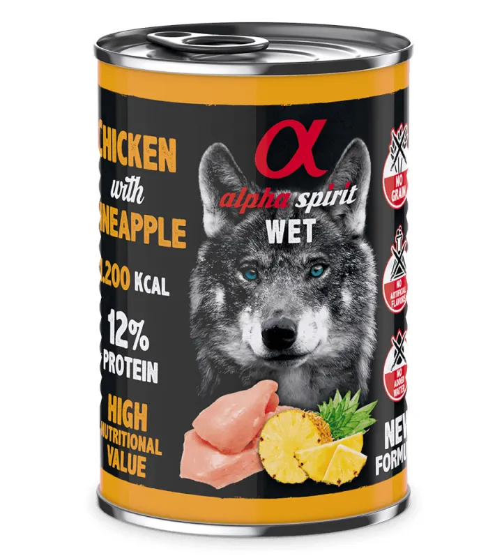 КОНСЕРВИ ДЛЯ ДОРОСЛИХ СОБАК АЛЬФА СПІРІТ З КУРКОЮ ТА АНАНАСАМИ 400г