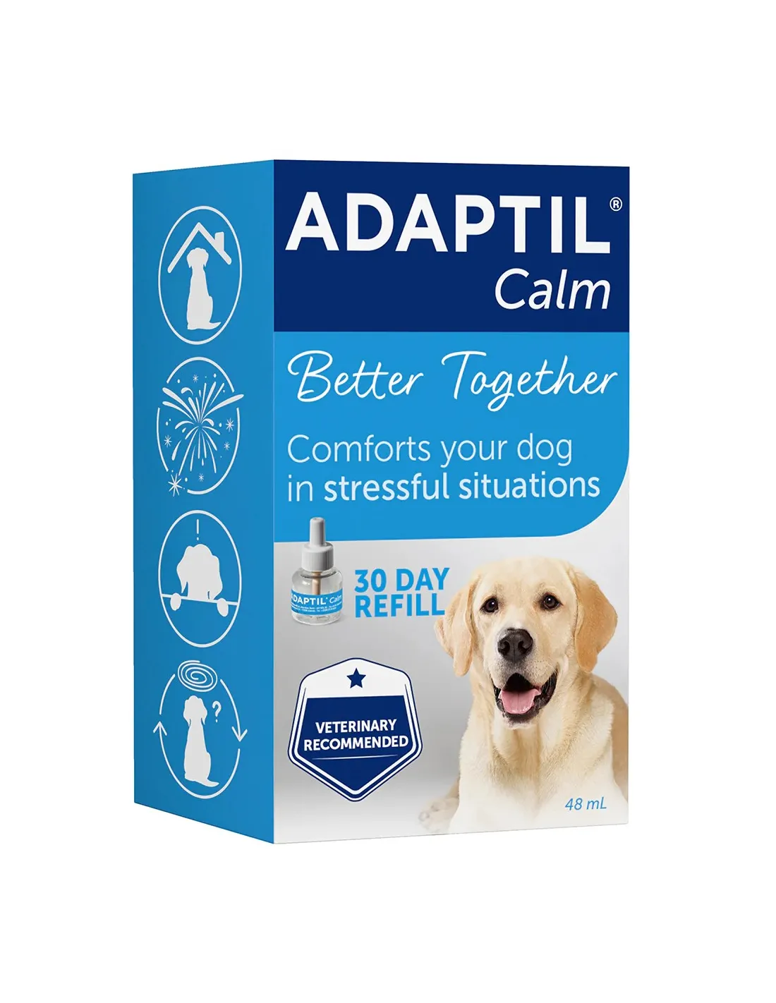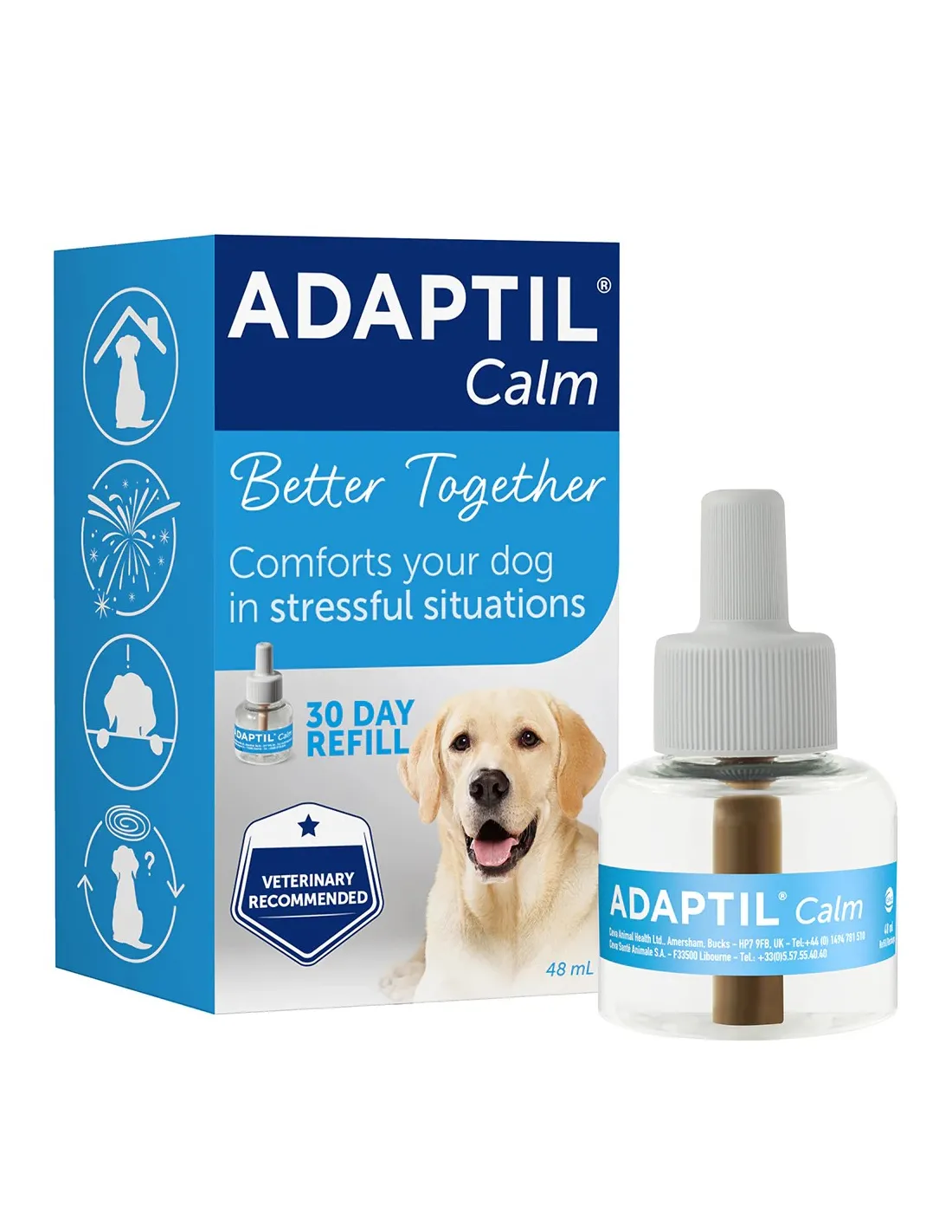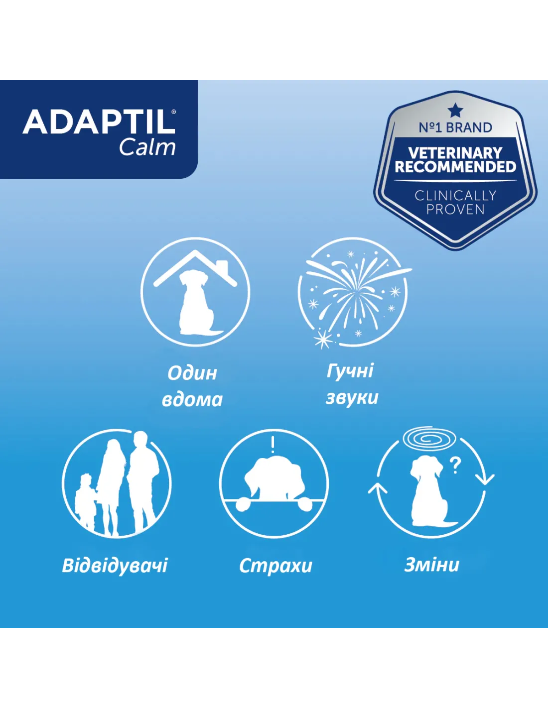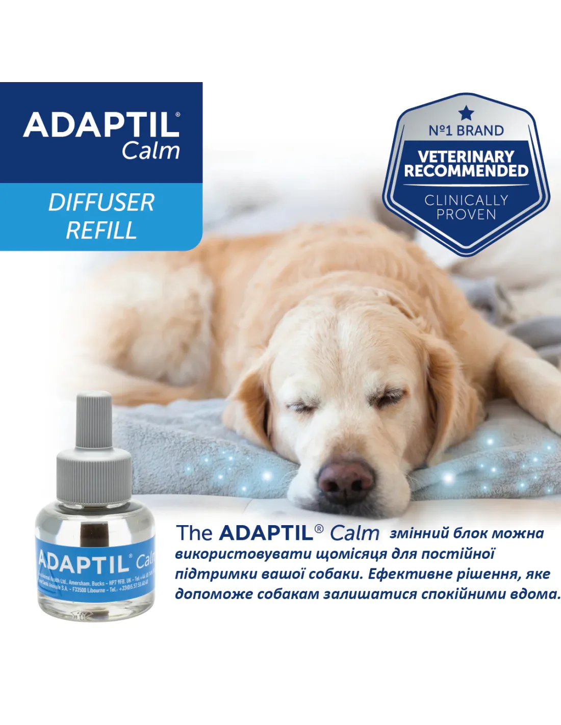 Adaptil є брендом №1, рекомендованим ветеринарами для заспокоєння собак. Його ефективність підтверджена клінічними дослідженнями, а безпека робить його популярним серед власників тварин. Змінні блоки прості у використанні, не потребують спеціальних навичок і є частиною широкого асортименту продуктів Adaptil від Ceva, включаючи спреї та нашийники.